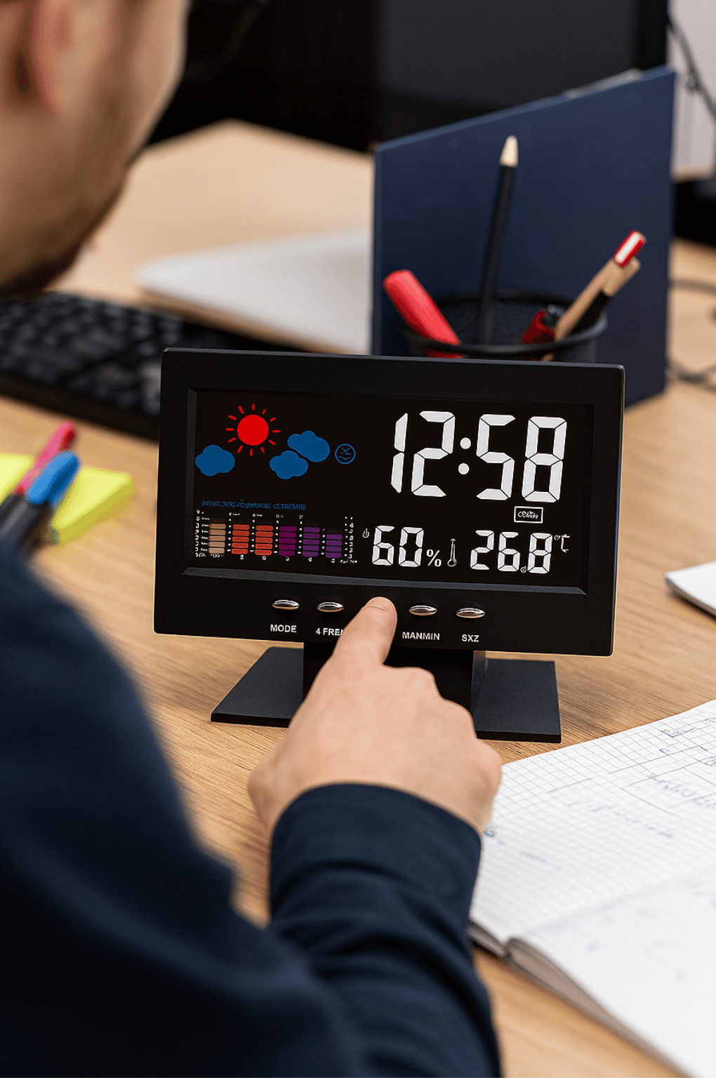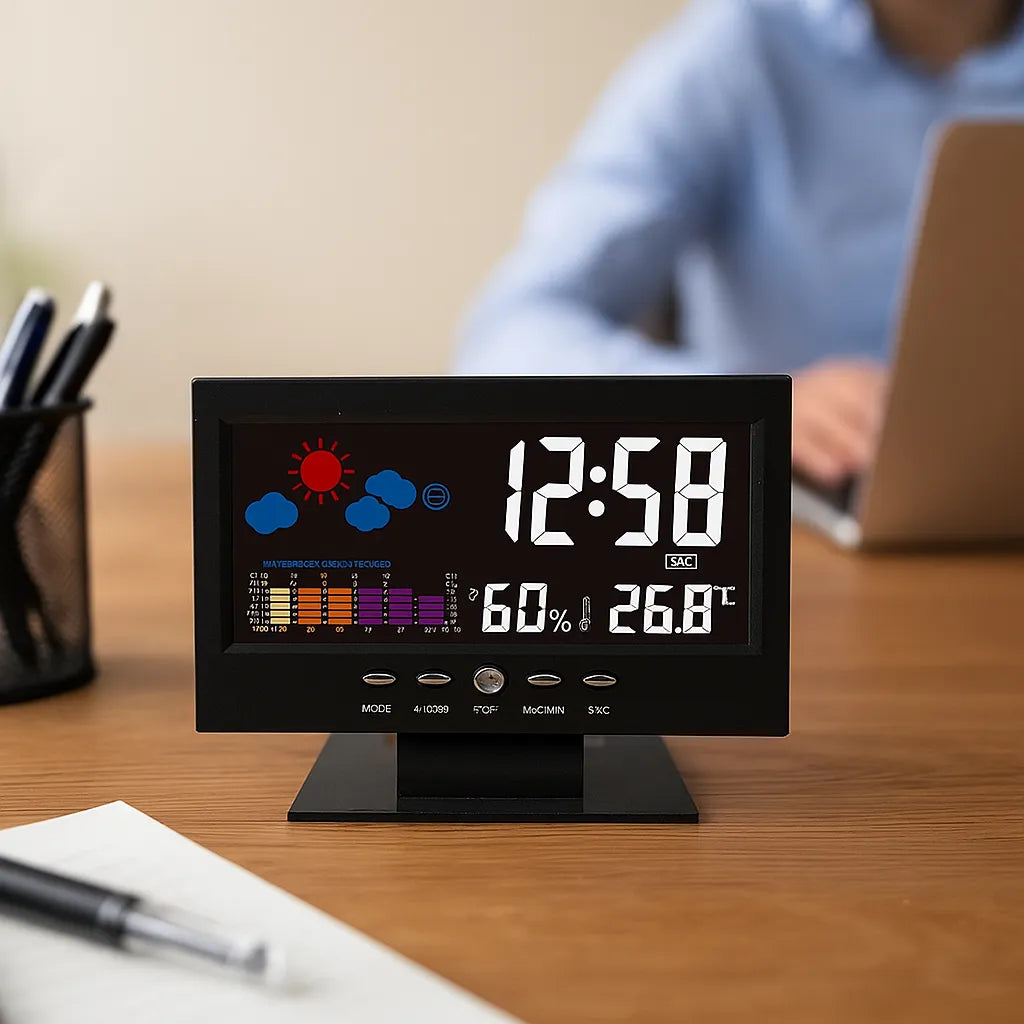 Lo compré buscando solo un despertador, pero me sorprendió todo lo que ofrece. Me encanta que muestra el clima y la temperatura, así me organizo mejor cada mañana.